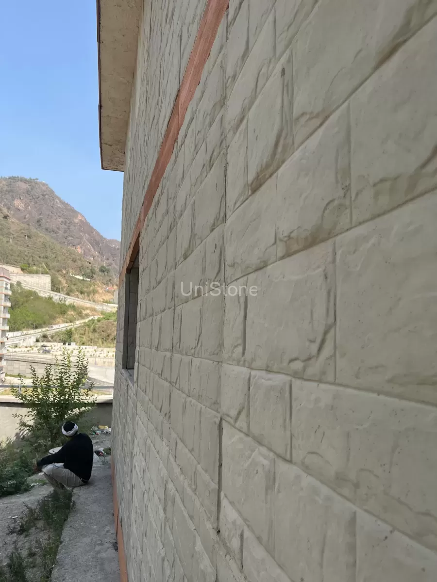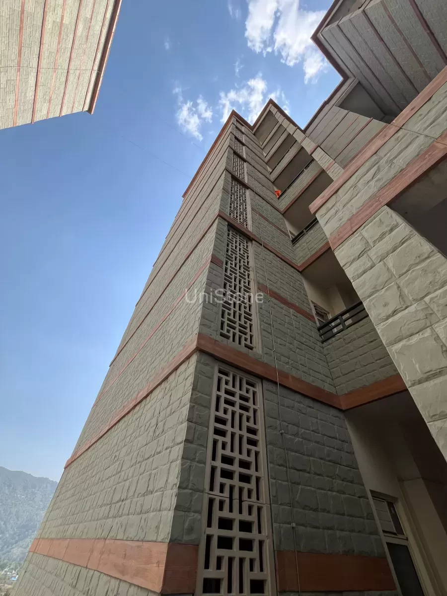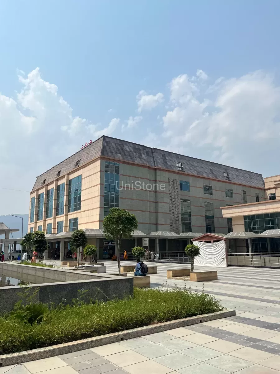 The AIIMS Bilaspur project in Himachal Pradesh was a unique challenge due to the architect’s vision of incorporating stone cladding with a soft greenish hue that mirrors the natural stone prevalent in the region. UniStone was pivotal in this project, developing various stone panels using GRC (Glassfibre Reinforced Concrete) material.