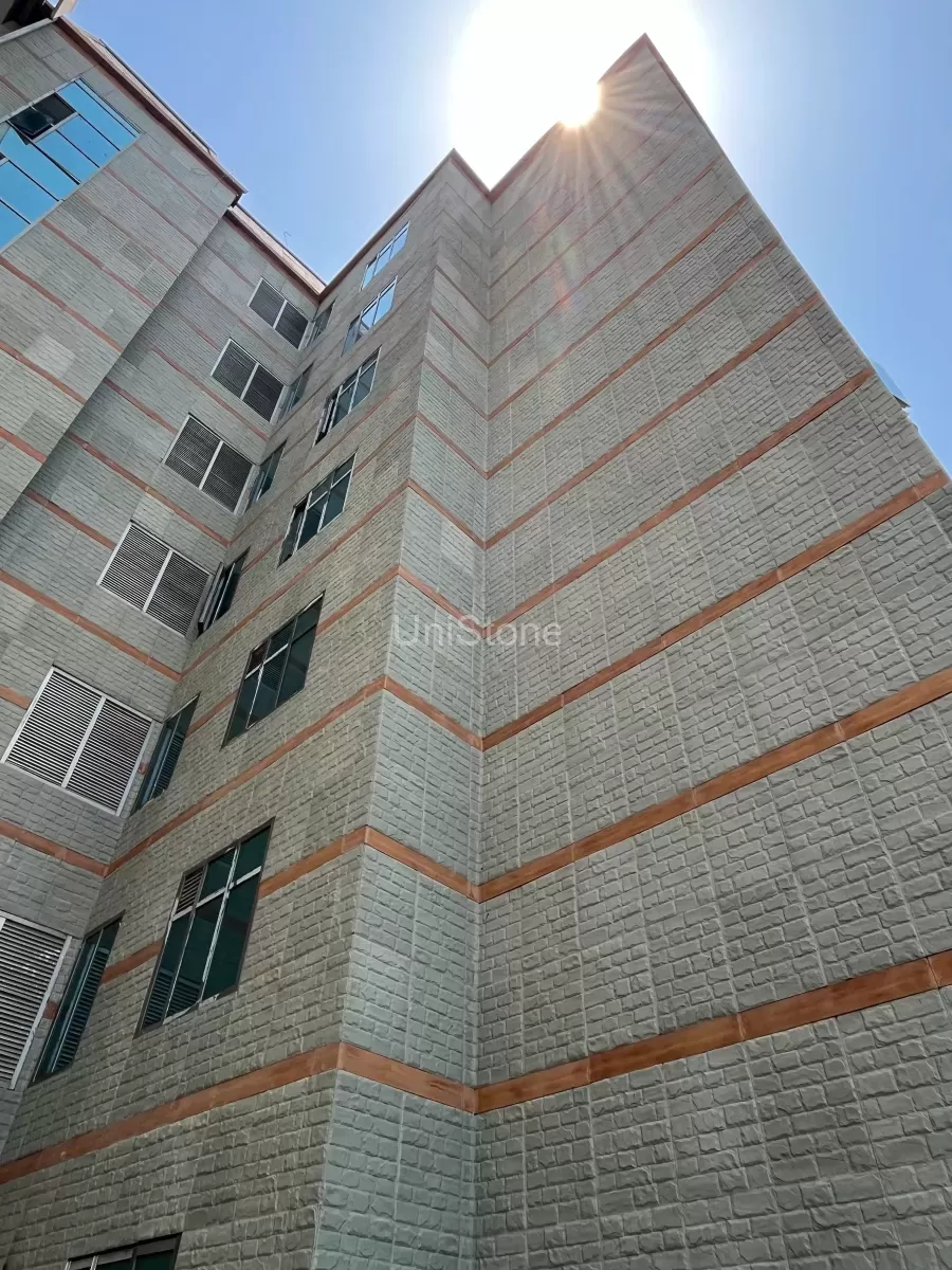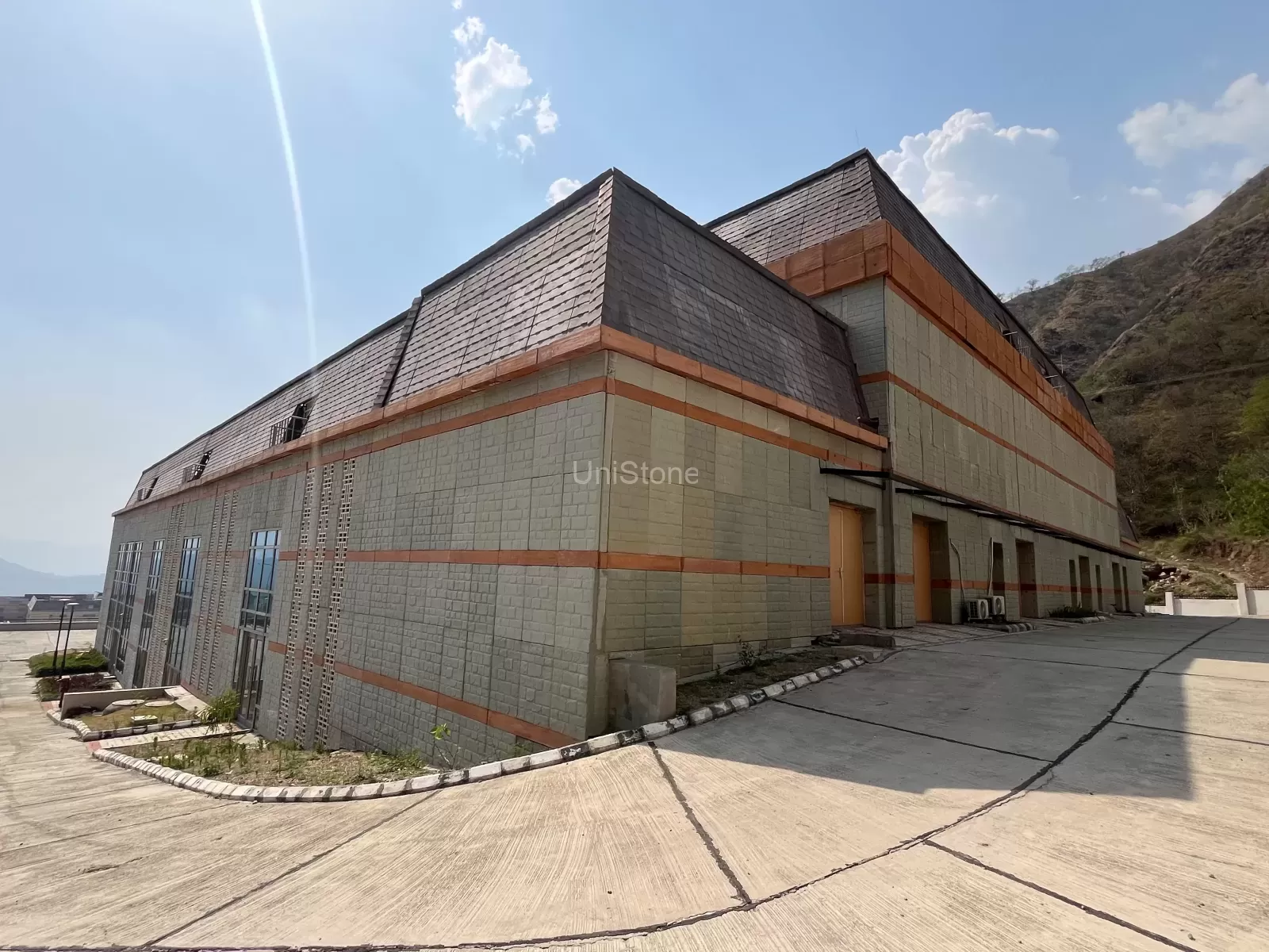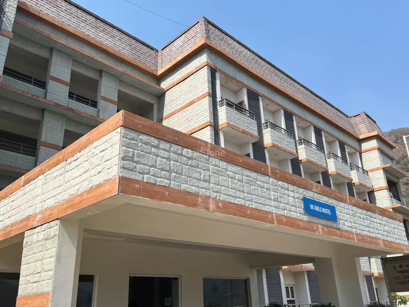 The AIIMS Bilaspur project in Himachal Pradesh was a unique challenge due to the architect’s vision of incorporating stone cladding with a soft greenish hue that mirrors the natural stone prevalent in the region. UniStone was pivotal in this project, developing various stone panels using GRC (Glassfibre Reinforced Concrete) material.