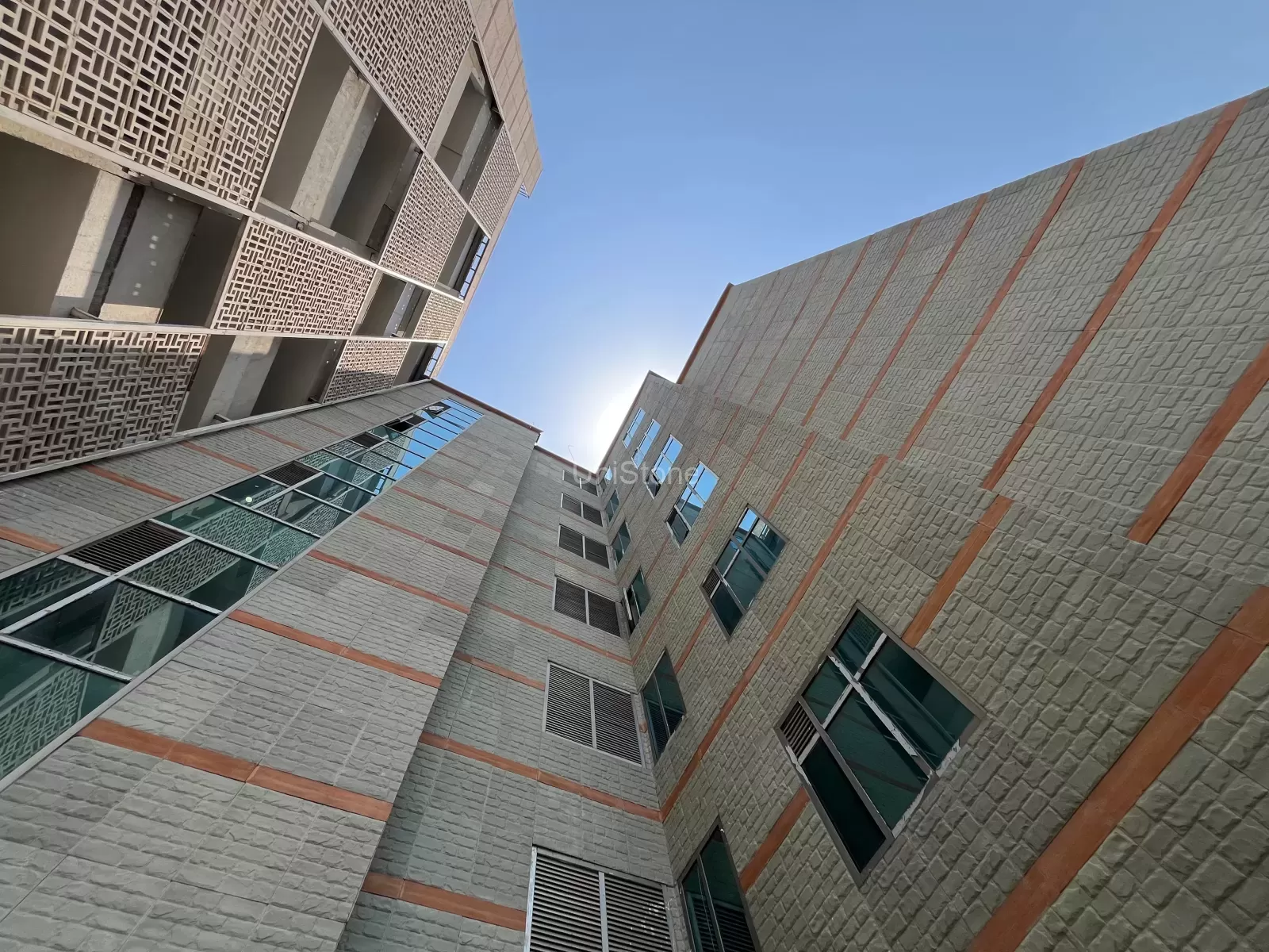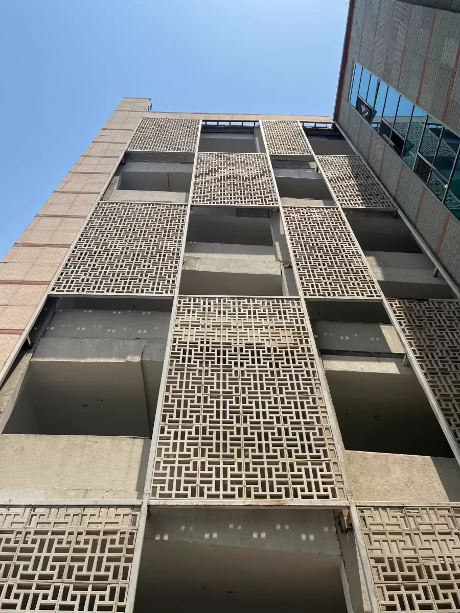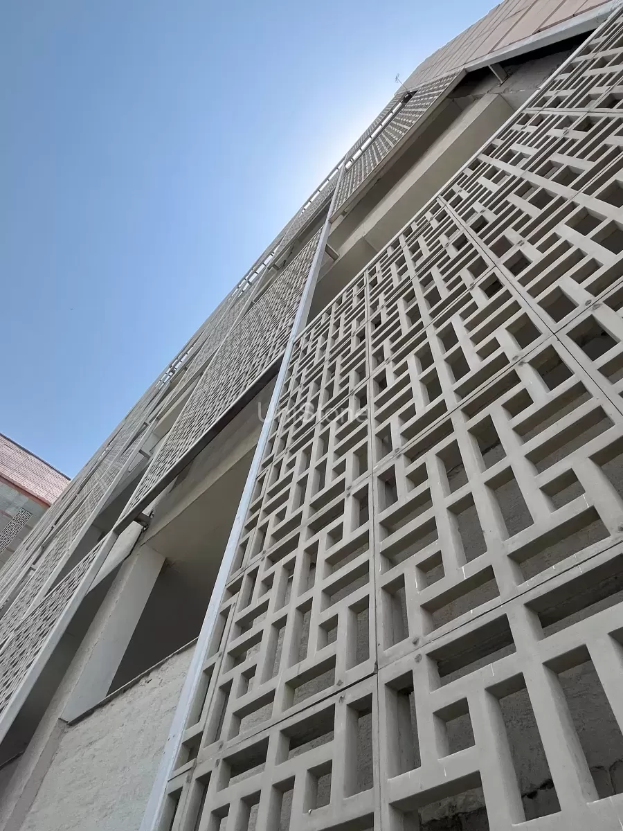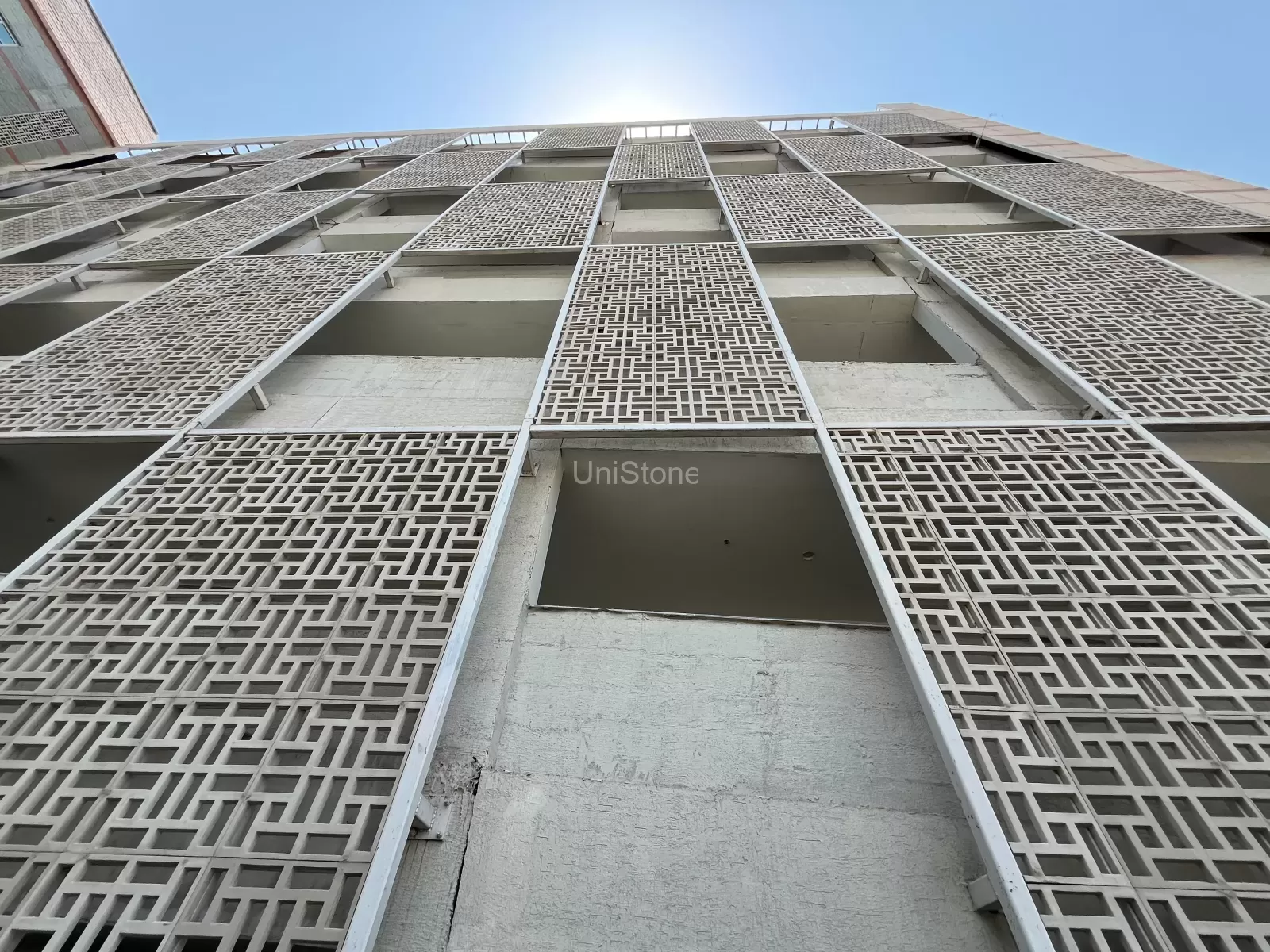 - GRC panel screens featuring square and rectangle geometric patterns were incorporated into the design.