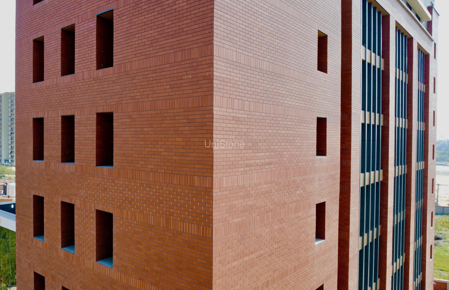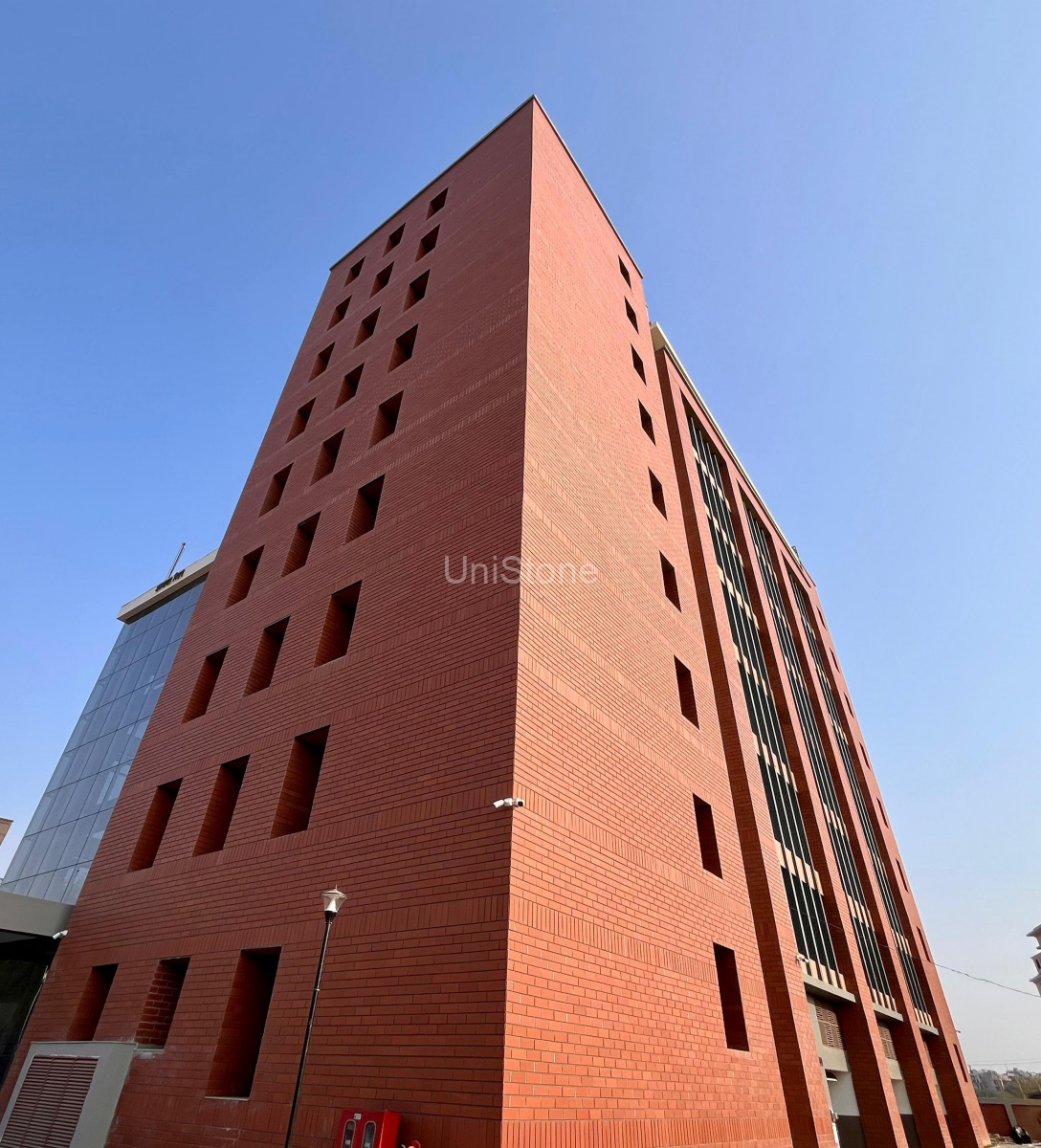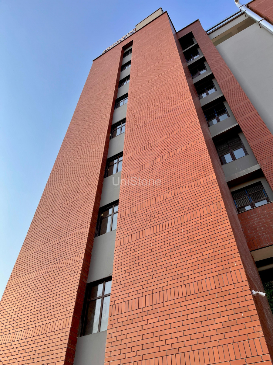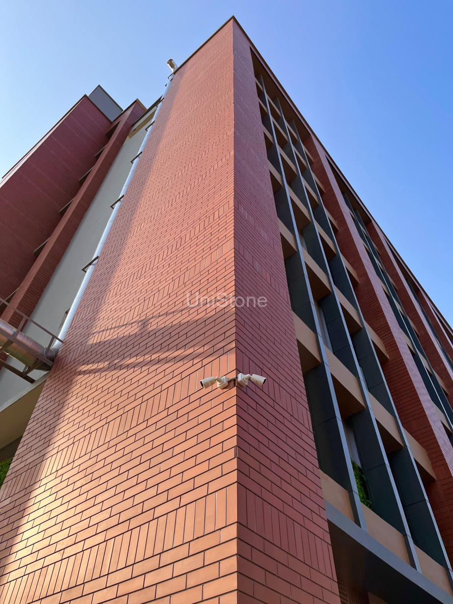 Unistone supplied and executed CFP (Clay Façade Panels) using a Dry Fixing System, ensuring long-term durability and a refined terracotta finish.
