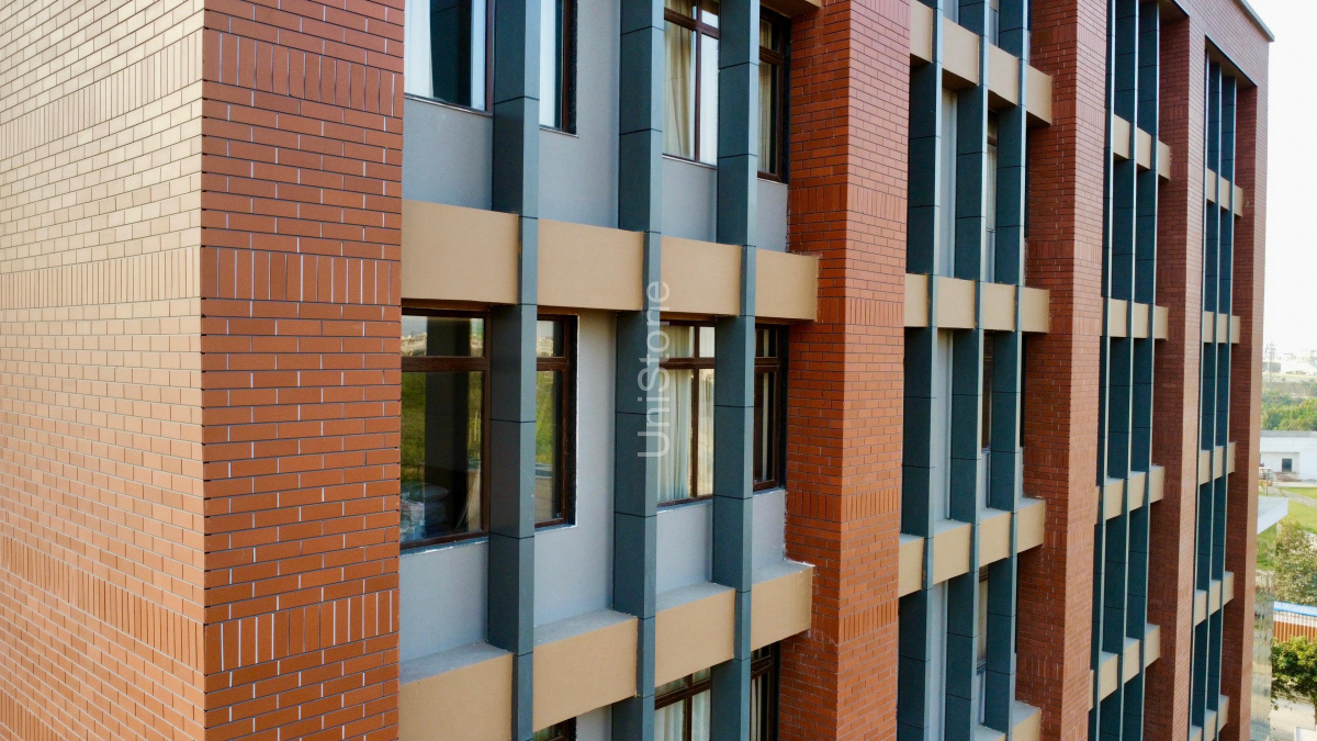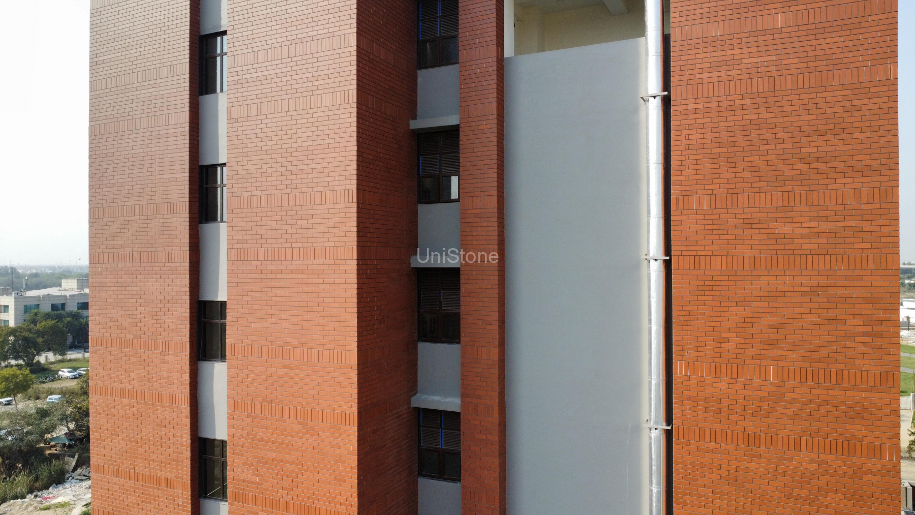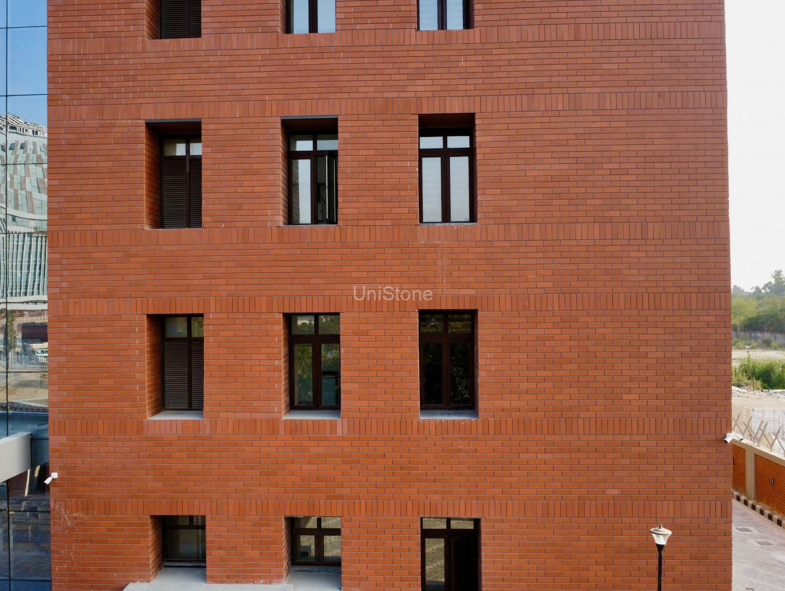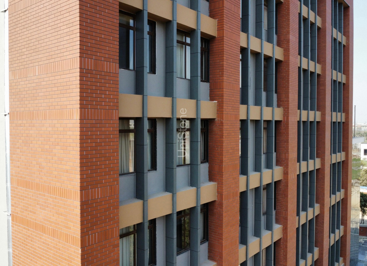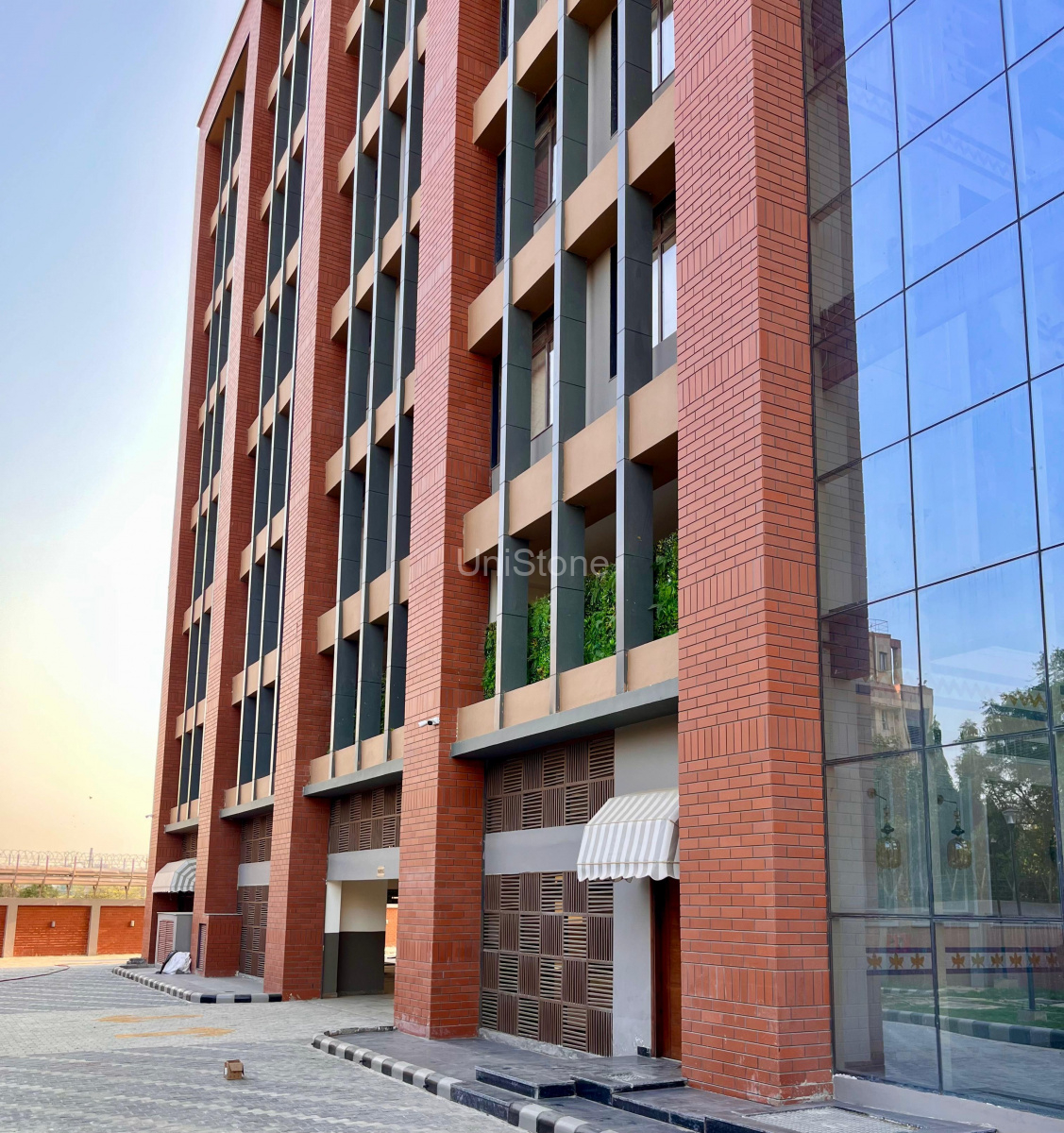 Unistone supplied and executed CFP (Clay Façade Panels) using a Dry Fixing System, ensuring long-term durability and a refined terracotta finish.