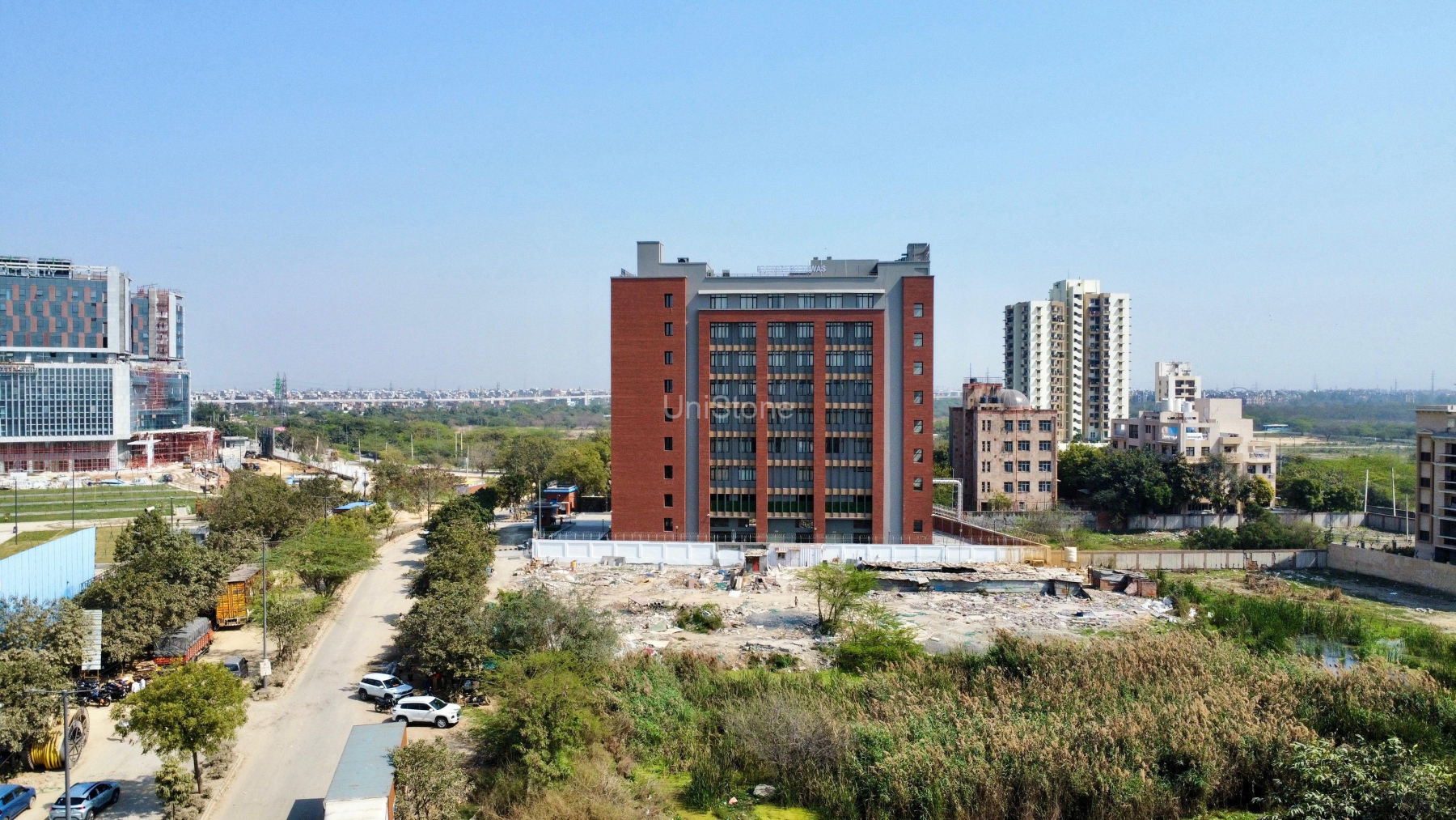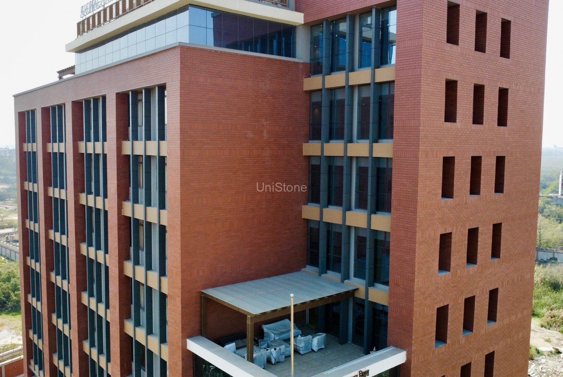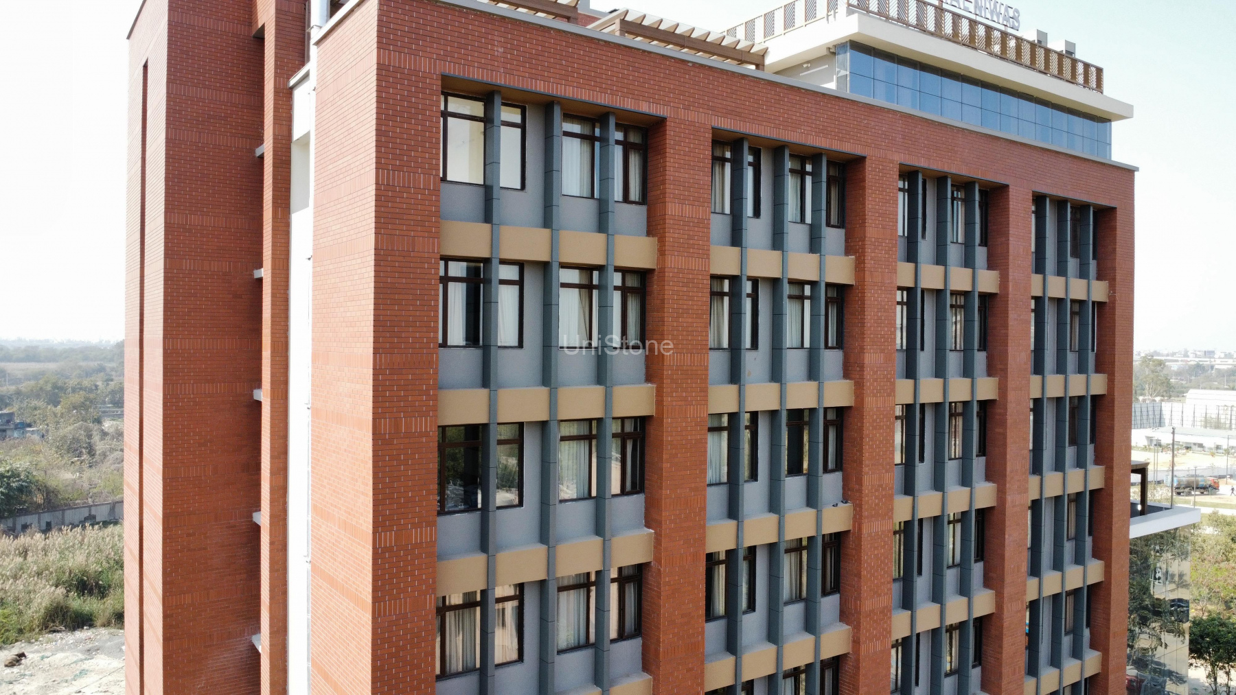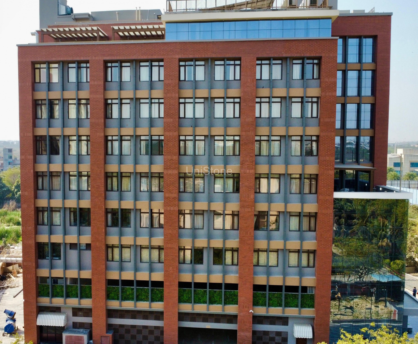 Unistone supplied and executed CFP (Clay Façade Panels) using a Dry Fixing System, ensuring long-term durability and a refined terracotta finish.