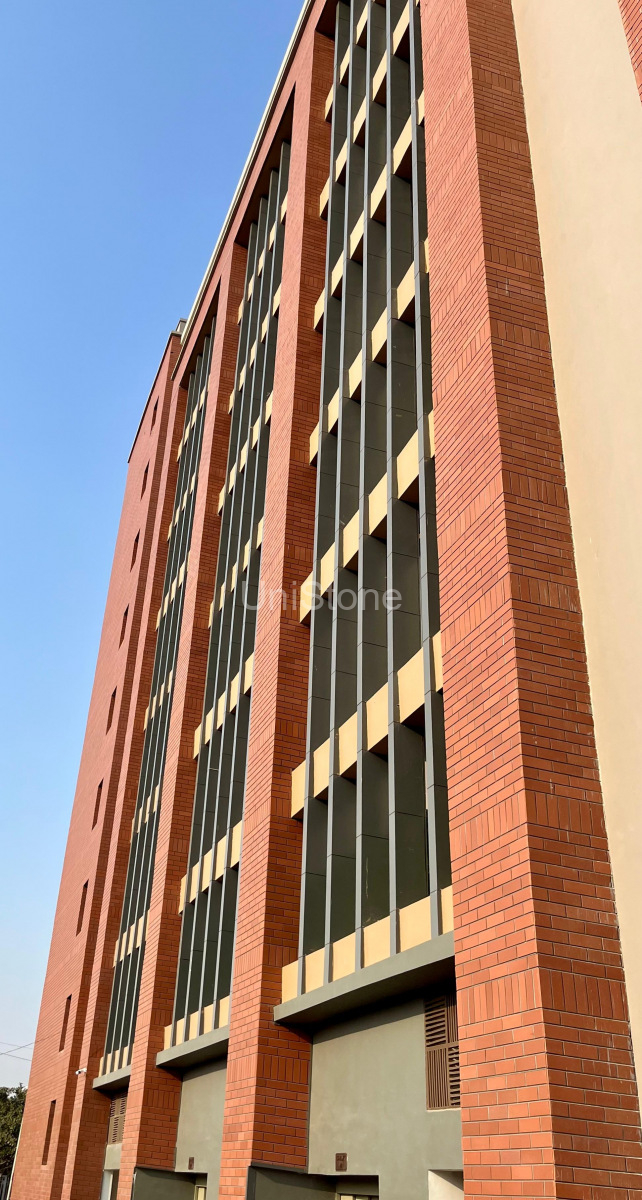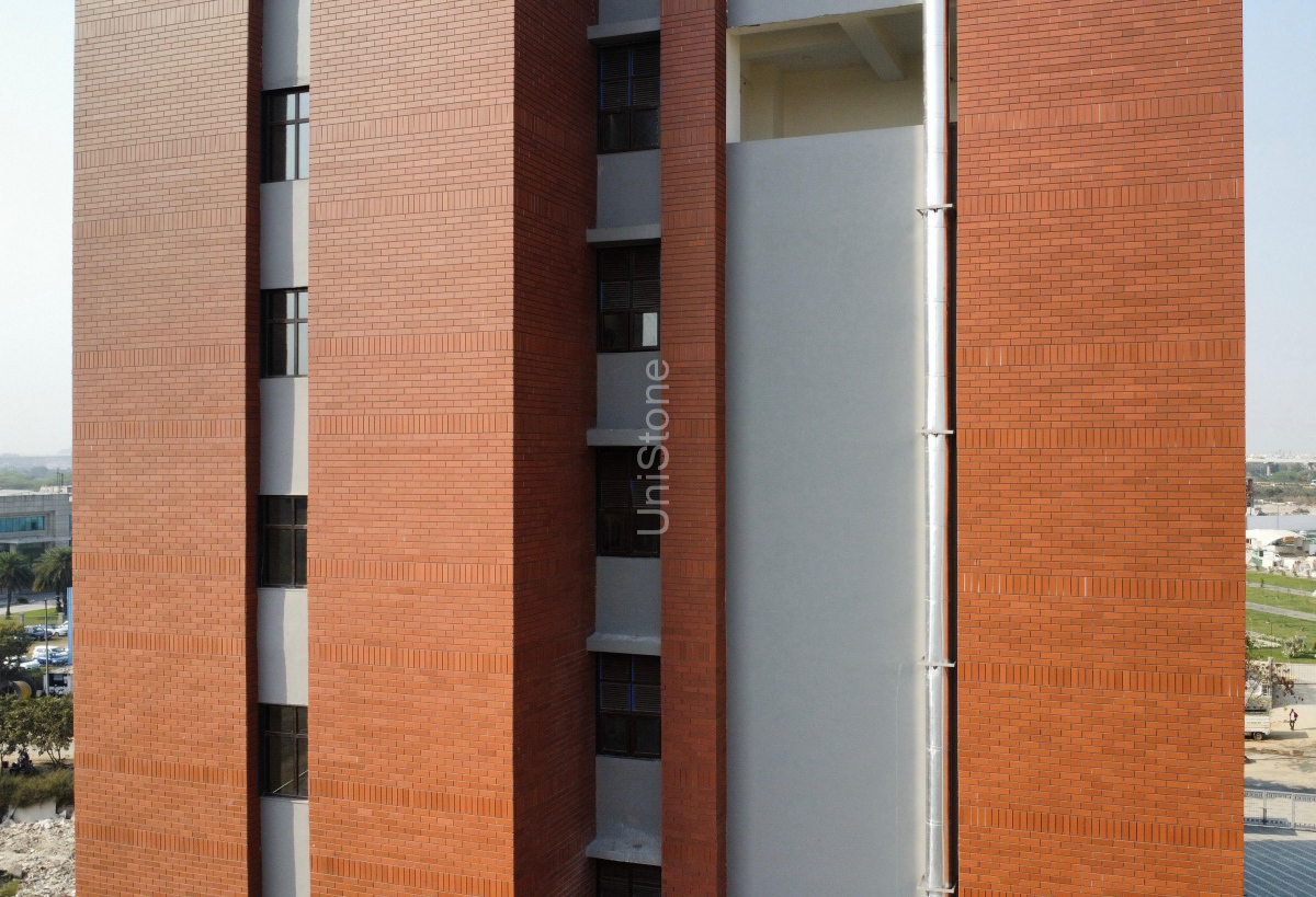 | Product Used | CFP (Clay Façade Panel) – Dry Fixing System Brick Size: 97 × 297 mm Thickness: 15 mm Colour: Terracotta |