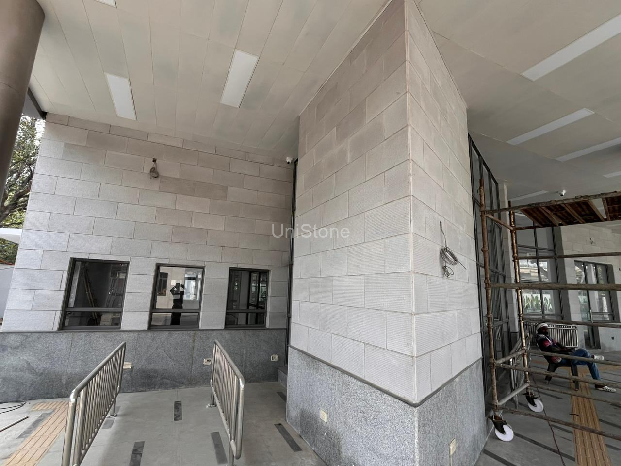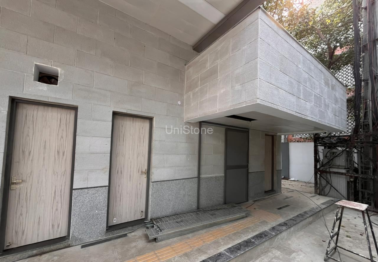 Unistone supplied and installed SFP (Stonecrete Façade Panels) in 300 × 600 mm Grey finish, using a hybrid fixing system to ensure both precision and longevity.