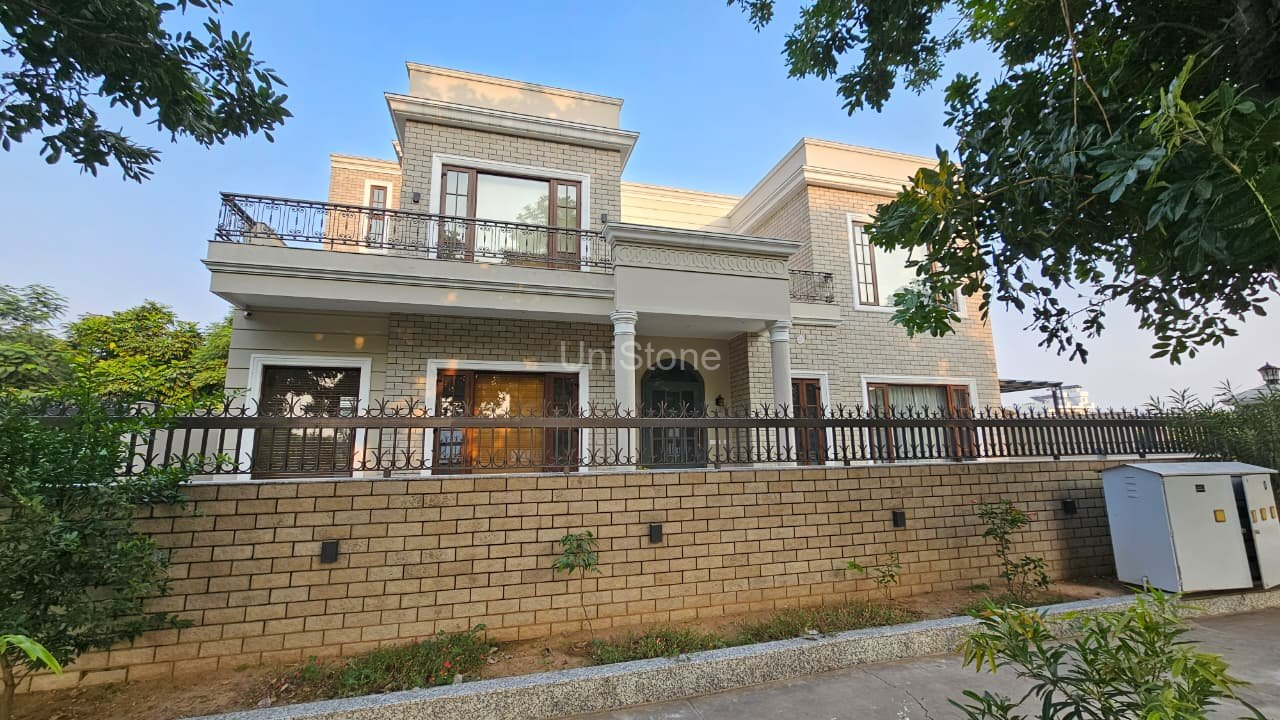 The Mullanpur Farmhouse façade now showcases Unistone’s expertise in natural stone finishes, delivering a robust, elegant, and enduring exterior that harmonises perfectly with its rural surroundings.