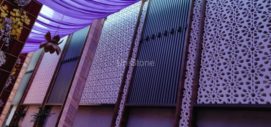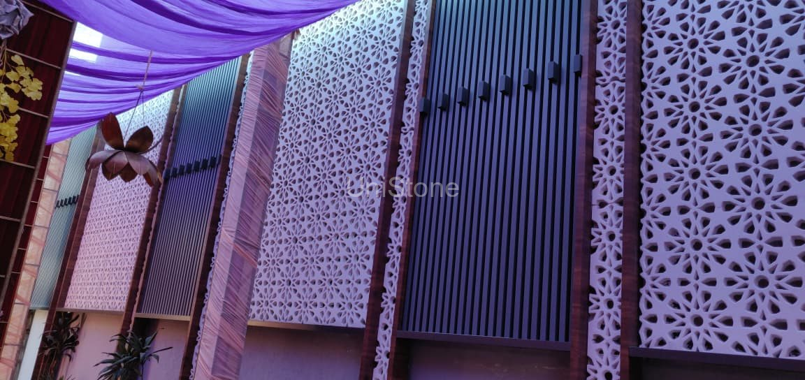 Unistone supplied and executed GRC Screens, enhancing the building’s elevation with both functional and aesthetic value.
