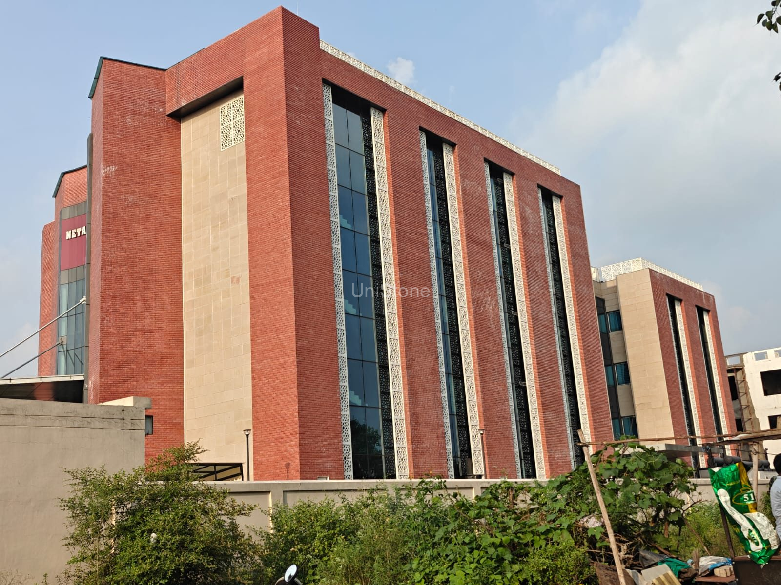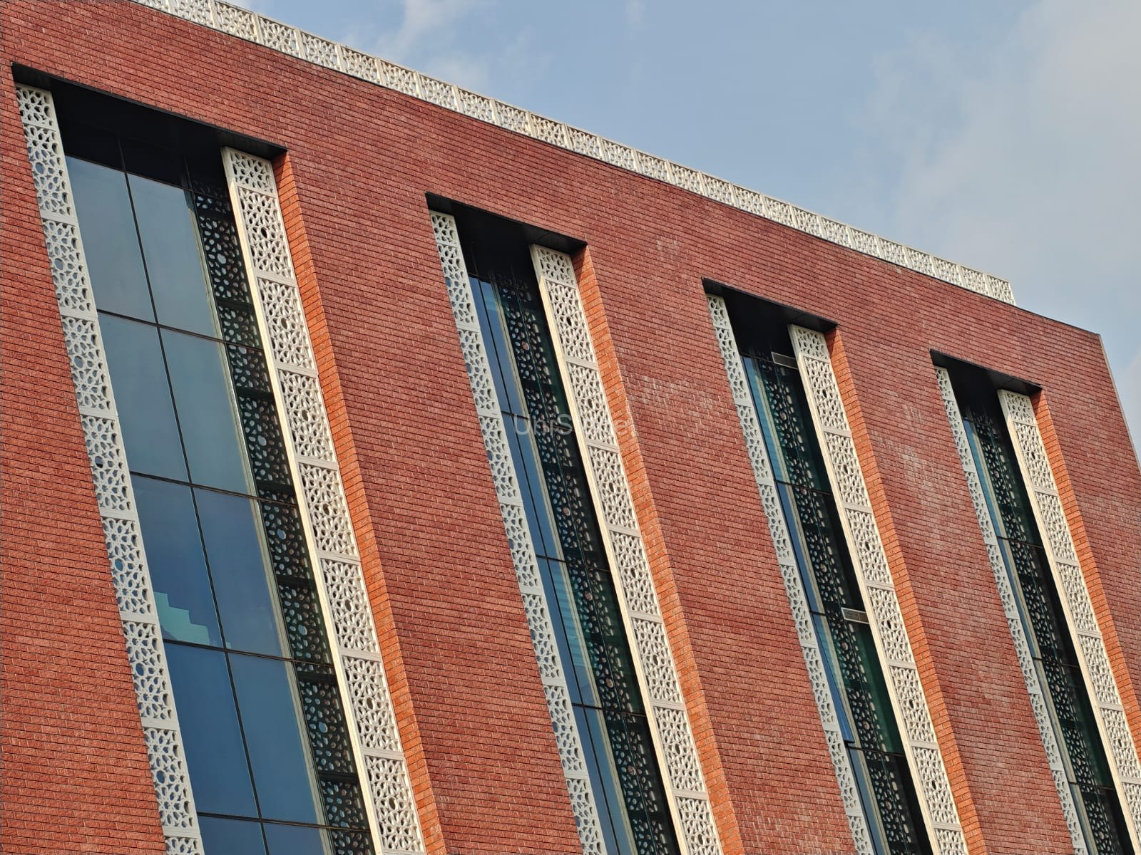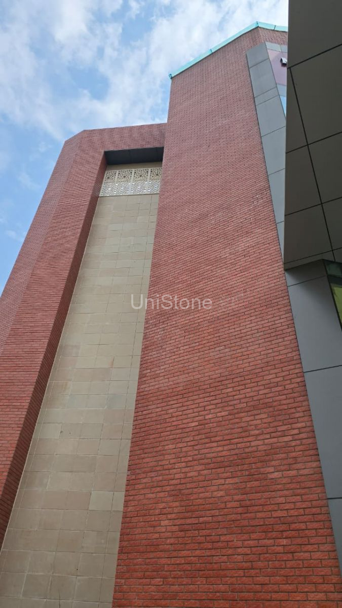 Products Used | • 9″ × 3″ Country Stone (Copper/Red) – Approx. 40,000 sq. ft. • GRC Jali – Approx. 8,000 sq. ft. |