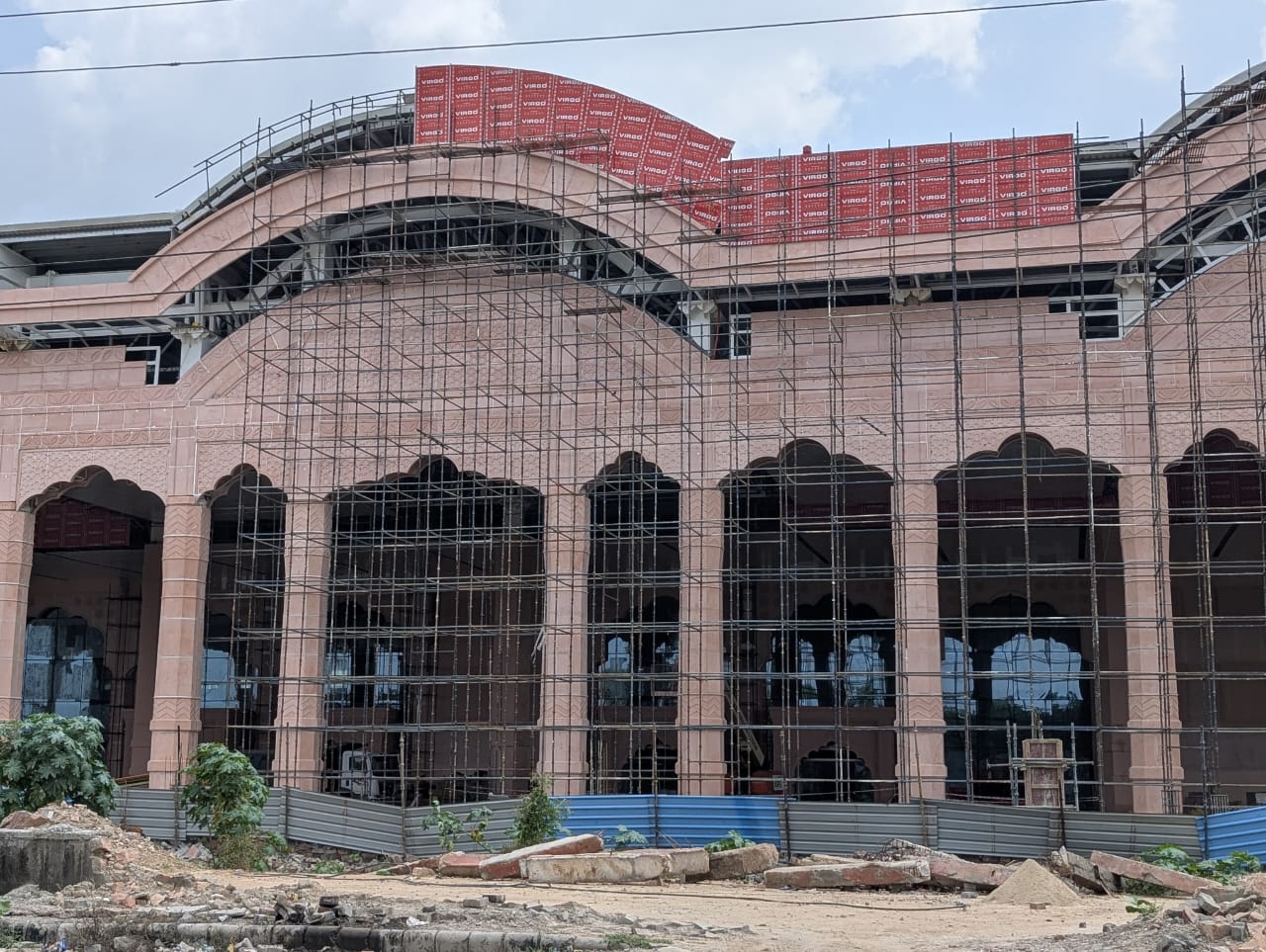 Product Used GRC Jali Area Mouldings GRC Bends Dhanush Element GRC Elements Jali Bents Full / Half GRC Columns Gallery Lakshman Kunj Multi-Level Parking, Ayodhya | GRC Façade by Unistone