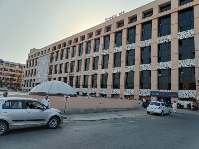 Products Used Gallery A Landmark in Stone Crete Architecture by Unistone Project Overview Located in the heart of Dheerpur, Delhi, Samkalp Bhawan is a distinguished institutional campus that bridges the