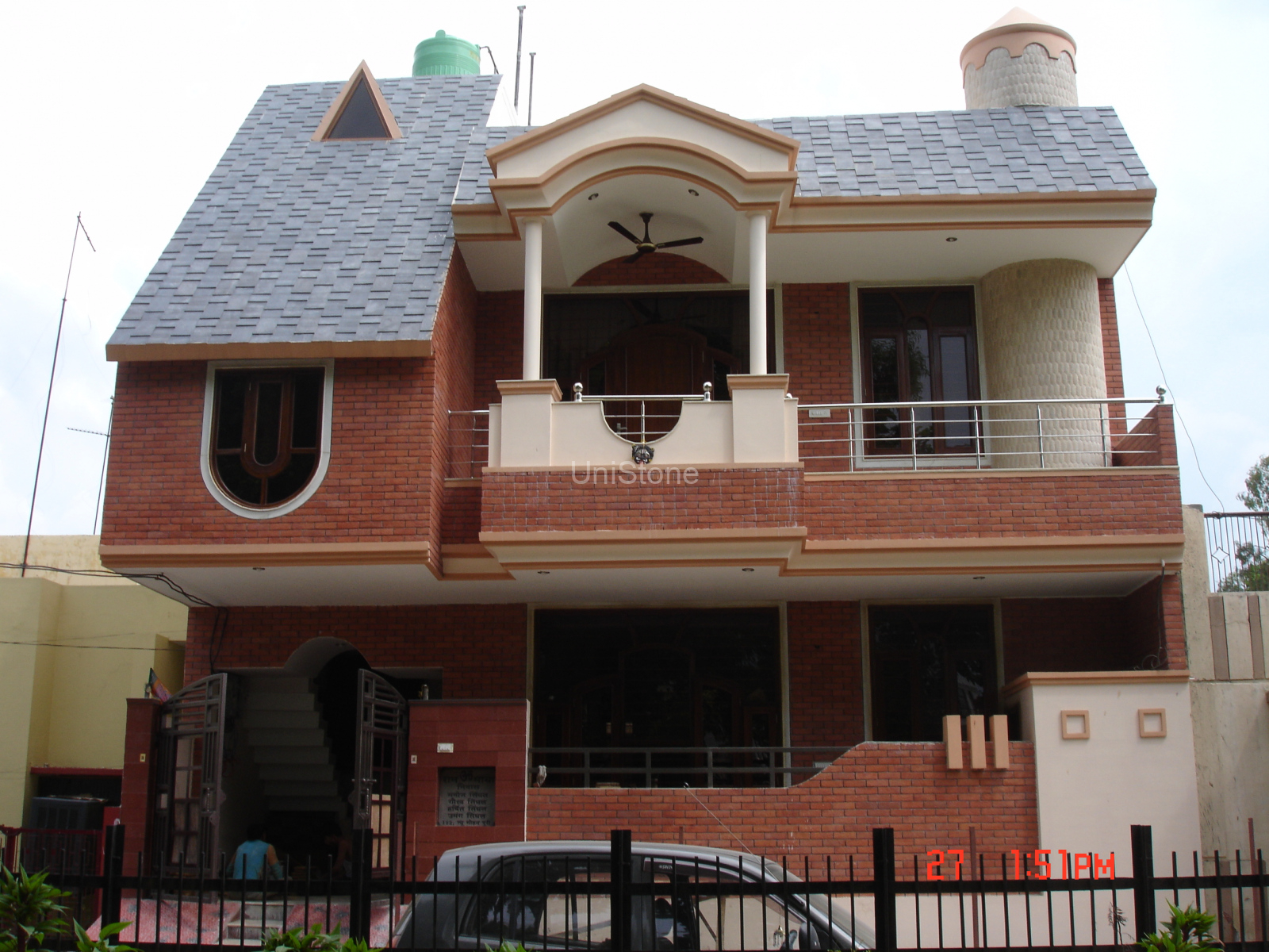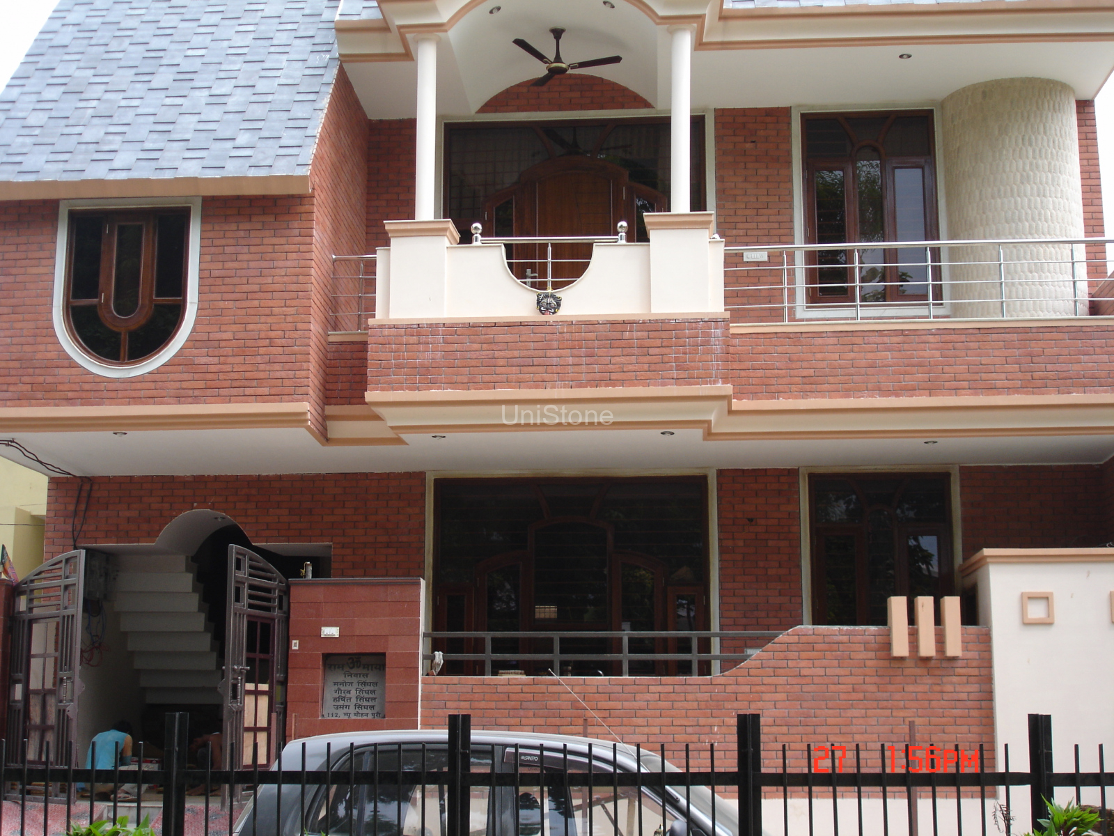 - UniBrick (8″ × 2.25″, Copper Red) – Delivered across approximately 1,500 sq. ft., bringing a rich brick-textured façade that complements the residence’s character.