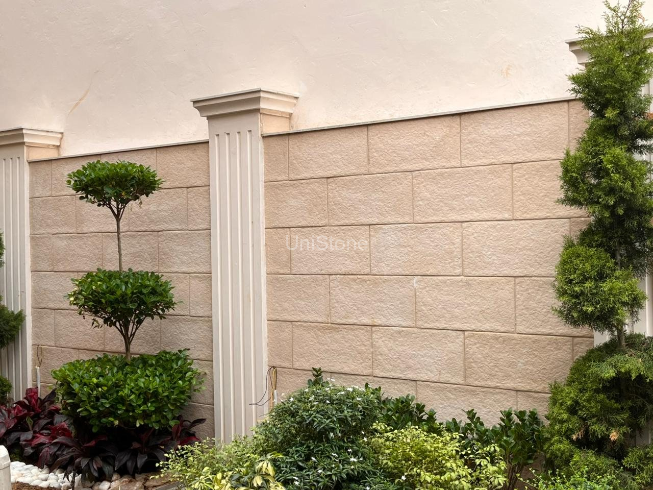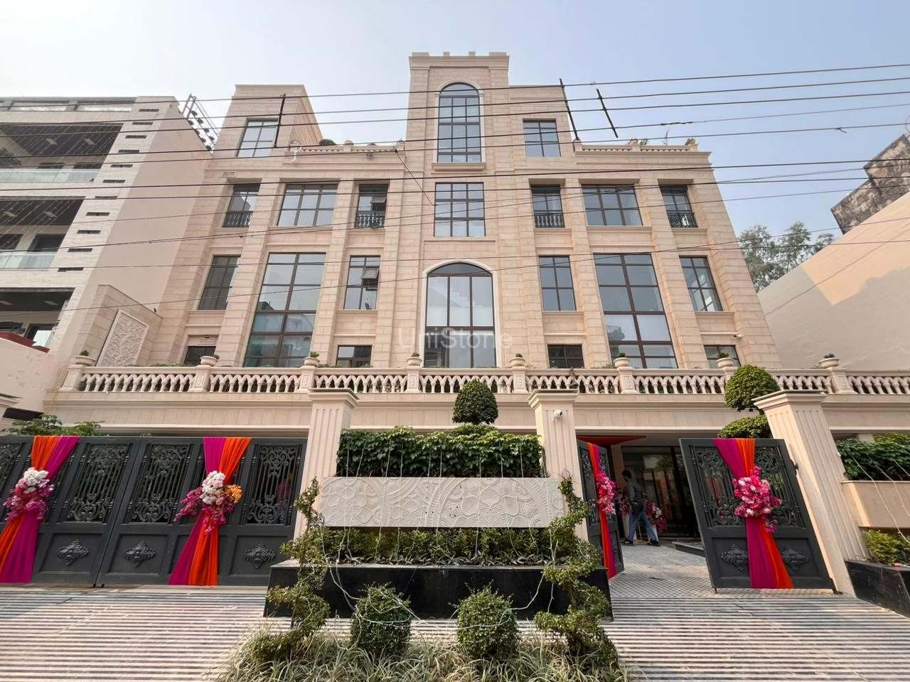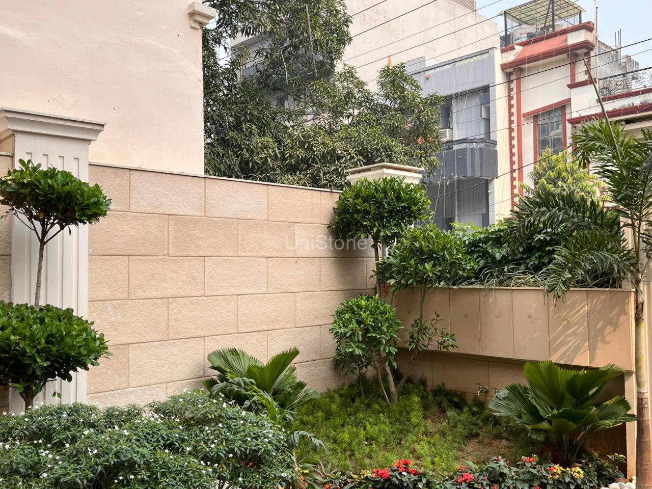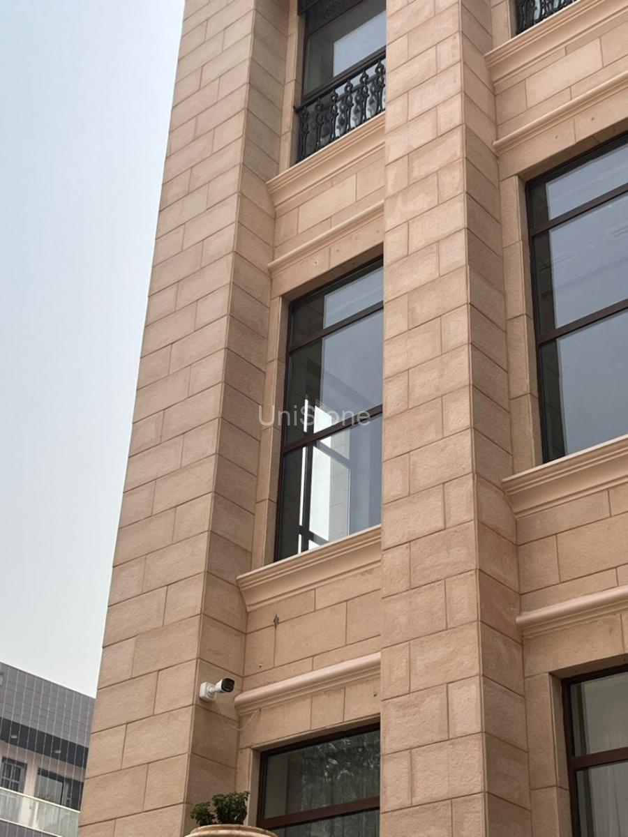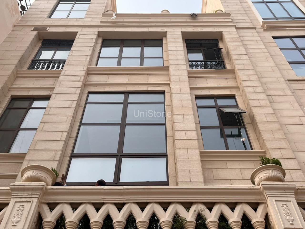 Unistone supplied and executed SFP (Stonecrete Façade Panels) with hybrid fixing along with custom GRC balusters for the elevation.