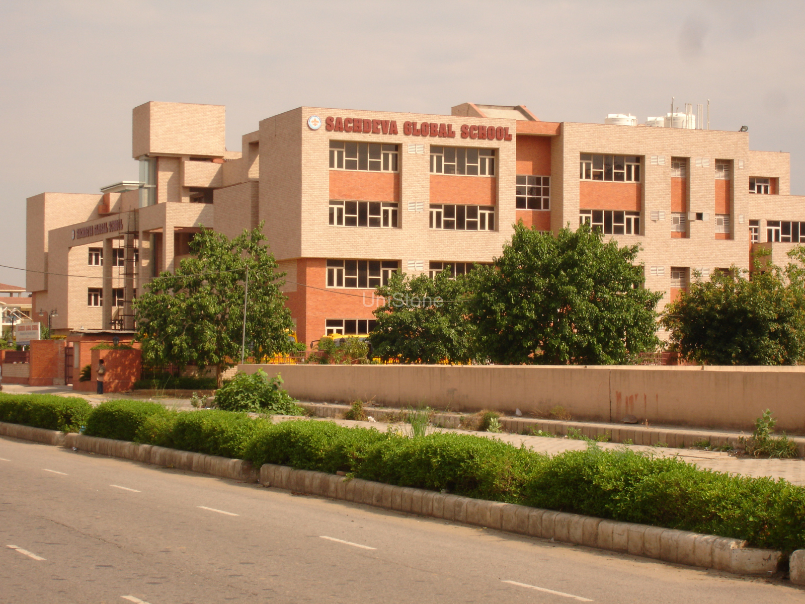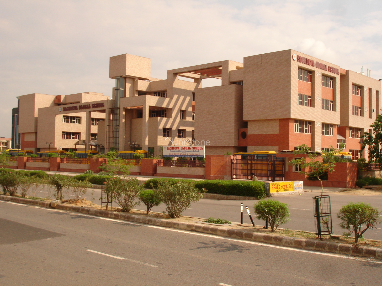 Sachdeva Global School, located in New Delhi, Delhi, is a landmark educational institution known for its robust design and enduring façade aesthetics. The architecture combines functionality with natural textures, creating a warm and inviting learning environment.