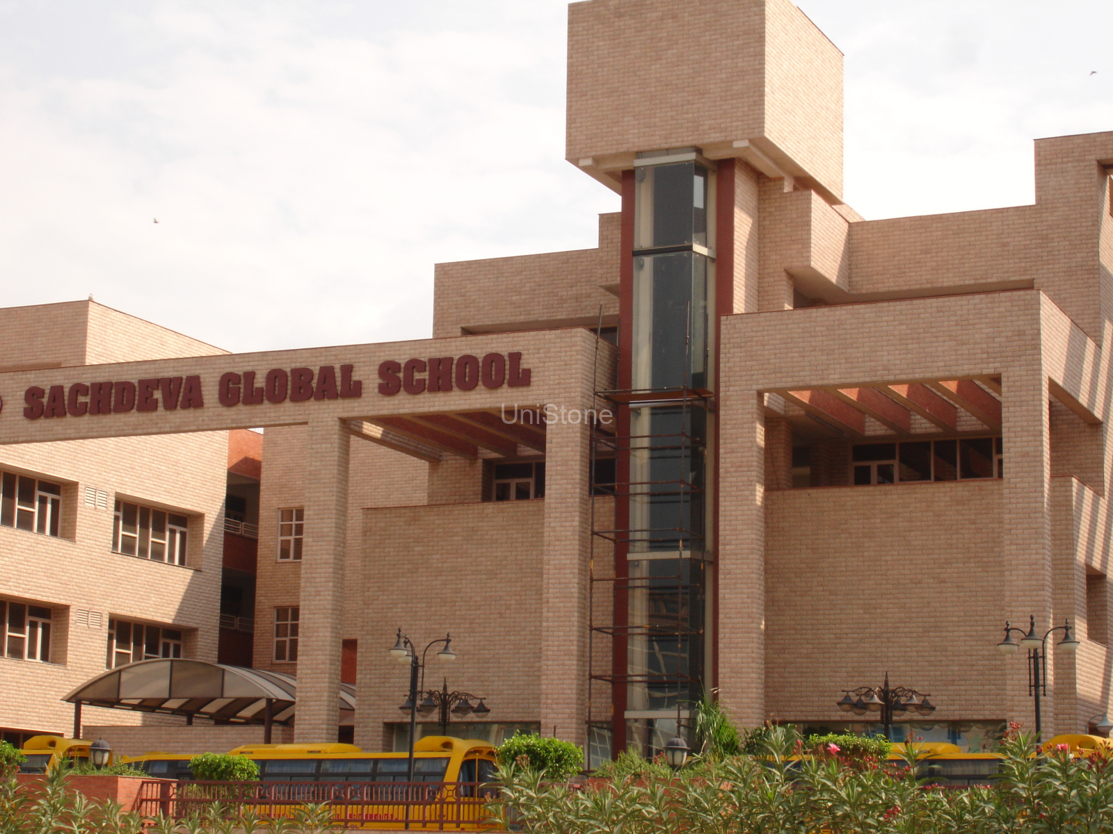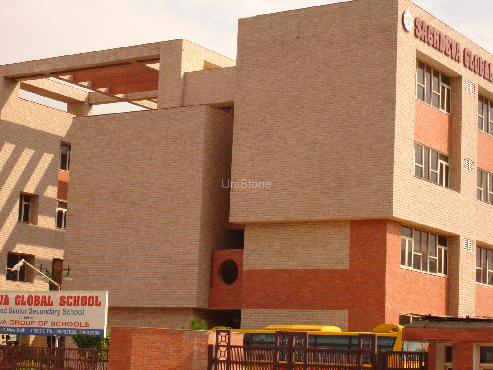 The façade of Sachdeva Global School stands as a fine example of Unistone’s craftsmanship and multi-material expertise, achieving a harmonious blend of natural stone and brick finishes that continues to retain its timeless appeal since its completion in 2009.