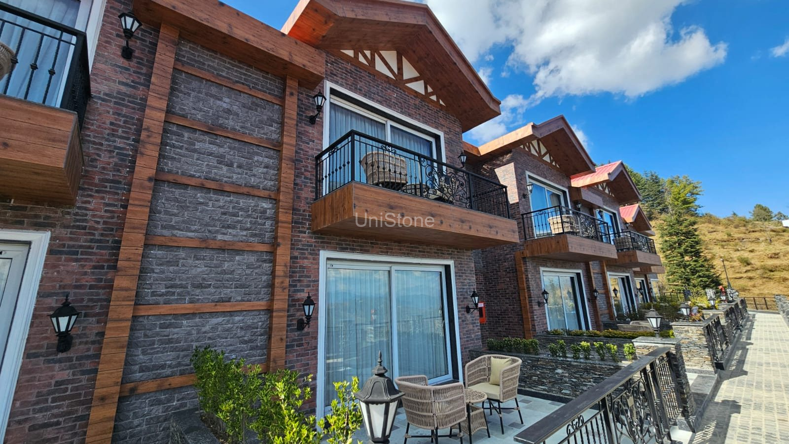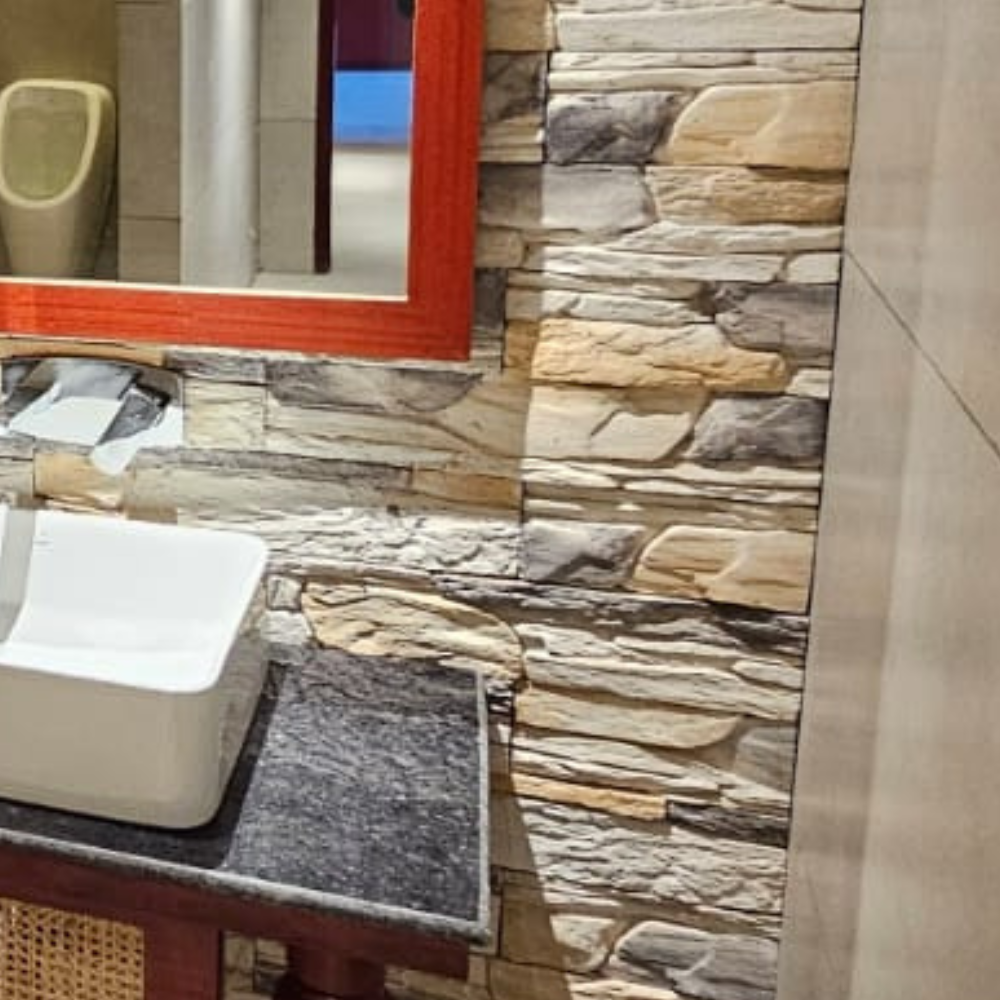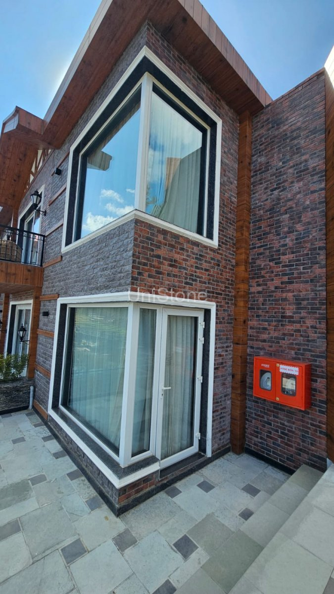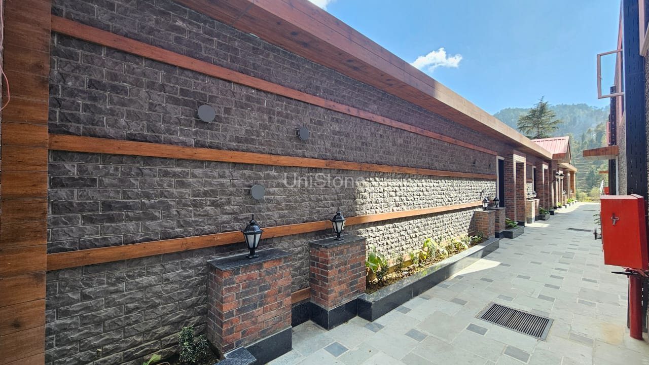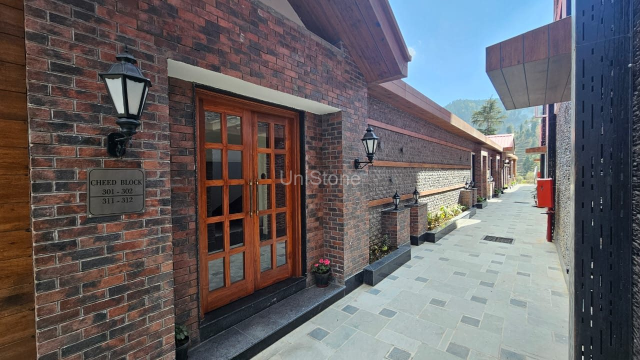 | Products Used | • Country Stone – 9″ × 3″, Delhi Stone (Approx. 11,000 sq. ft.) • Da Vinci Cliff Stone – Atalic White (Approx. 1,600 sq. ft.) • Country Brick – 7.5″ × 2.25″, Zara White (Approx. 1,200 sq. ft.) • UniBrick Rustic – 8″ × 2.25″, Zara Red (Approx. 5,500 sq. ft.) • GRC Moulding – 1,200 Running Ft. |