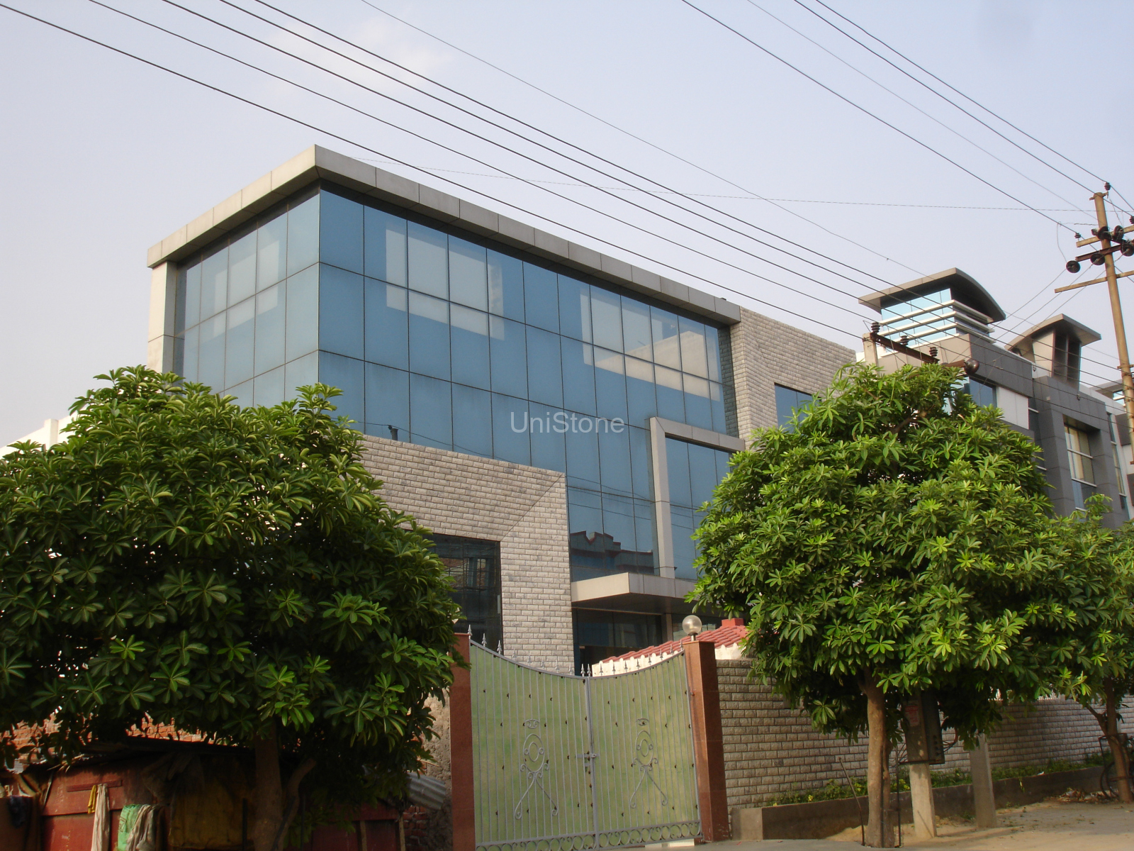 The façade of the Workplace, Noida, now reflects Unistone’s expertise in combining modern stone and brick systems, resulting in a durable, elegant, and distinctive commercial façade that enhances the architectural identity of the workspace.