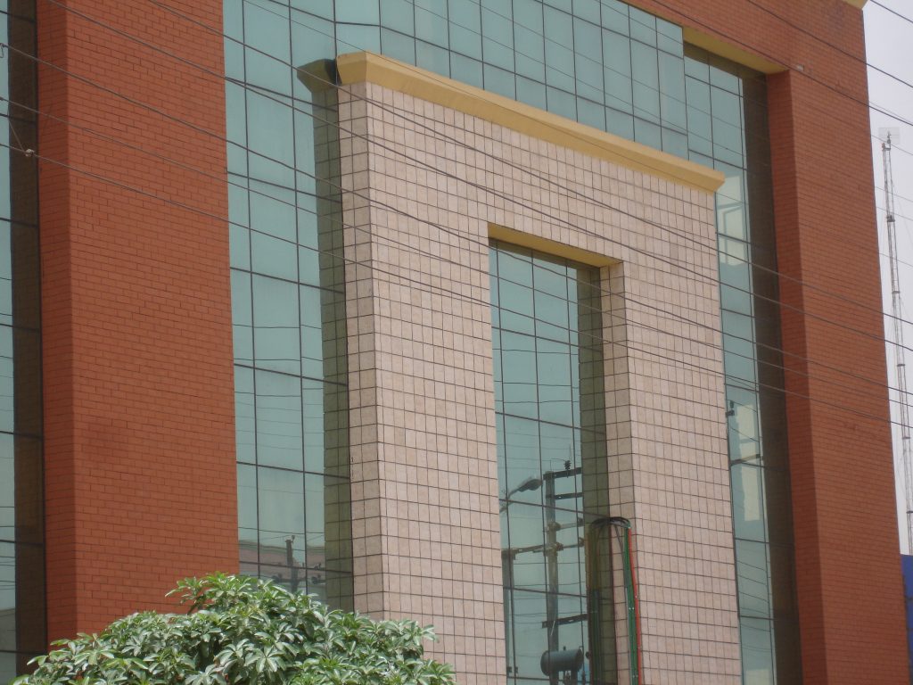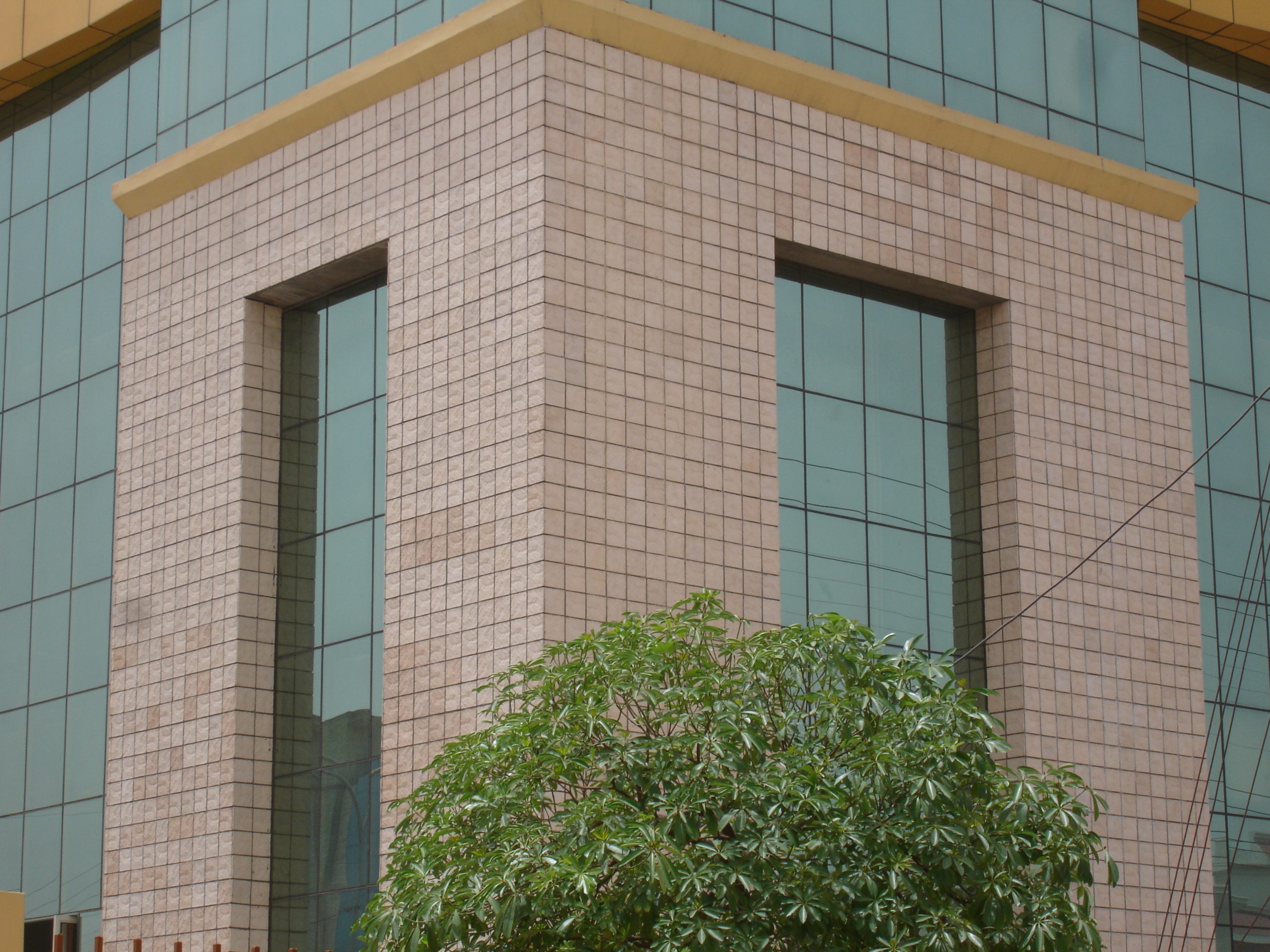 Unistone supplied and installed Weatherdale – 8″ × 8″ in Dholpur colour, covering approximately 3,000 sq. ft. of façade area.